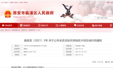 陕西省西安市临潼区2022年最新征收农用地区片综合地价(征地拆迁补偿标准)已于2021年调整完毕公布实施陕西省西安市临潼区征收农用地和未利用地区片综合地价(征地拆迁补偿标准):主城区片:涵盖骊山街道、斜口街道、西泉街道、行者街道、秦陵街道、代王街道、新丰街道全部区域,共涉及7个街道的11个社区,66个行政村。耕地补偿标准60130元 亩;种植