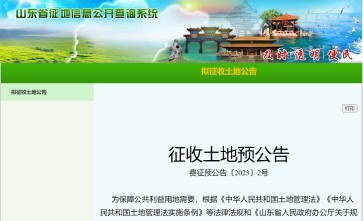为保障公共利益用地需要,根据《中华人民共和国土地管理法》《中华人民共和国土地管理法实施条例》等法律法规和《山东省人民政府办公厅关于规范征收土地管理工作的意见》(鲁政办字〔2022〕13号)有关规定,经研究决定,现发布征收土地预公告。